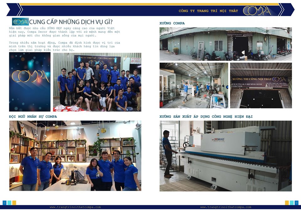 Compa hội tụ những nhân sự trẻ tài năng và nhiệt huyết, chúng tôi có bộ phận thiết kế và thi công phụ trách riêng biệt những cũng hợp tác vô cùng ăn ý trong một dây chuyển sản xuất khép kín để tạo ra những công trình hoàn hảo nhất.